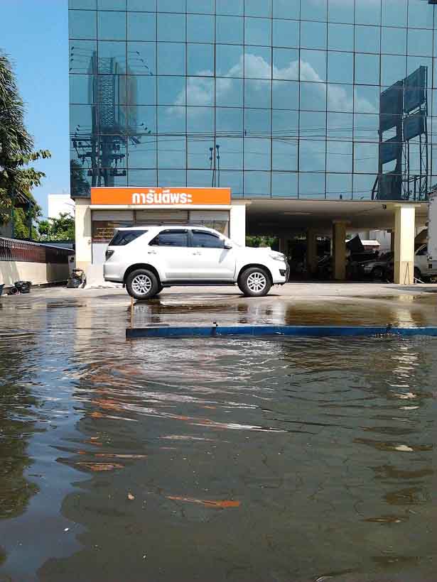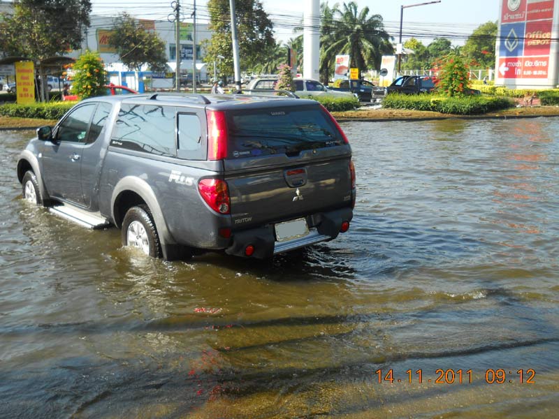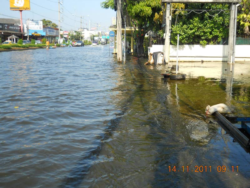 **** UPDATE **** ล่าสุด วันที่ 17 พฤศจิกายน 2554 เวลา 12.00 (เที่ยงวัน) วัดระดับน้ำสูงสุดตรงหน้าสถาบันการันตีพระ วัดได้ประมาณ 25-30 เซ็นติเมตร รถเล็กสามารถใช้ได้แล้วนะครับ