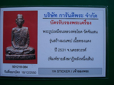 ...........และสุดท้าย ผมเข้าใจทาง web นะว่าไม่อยากให้เหตุการณ์เช่นนี้เกิดขึ้น และ ก็รู้สึกเห็นใจบุคคลในข้อ 2+3 ที่โดนแจ็คพอท(เฉพาะท่านที่ไม่มีเจตนาแฝง) และขอย้ำอีกครั้ง ผมไม่เคยซื้อ-ขายพระชุดนี้ แต่ออกมาแสดงความคิดเห็น และถามหาจุดยืนของบัตรรับรอง เพื่อความเข้าใจที่ตรงกันทุกฝ่าย......เพียงเท่านั้นครับผม....