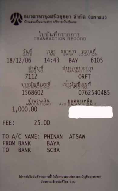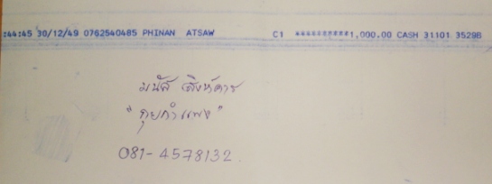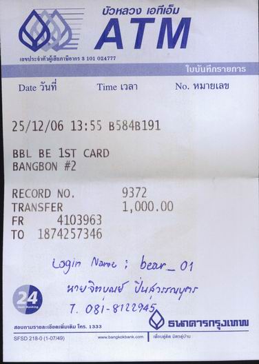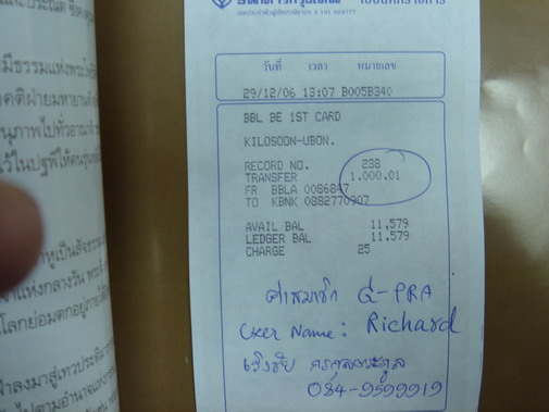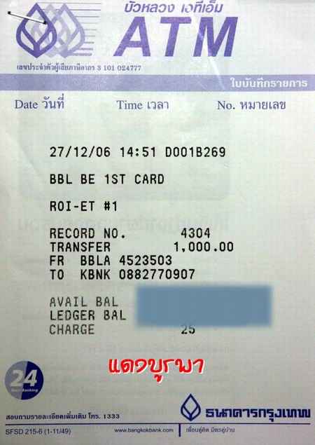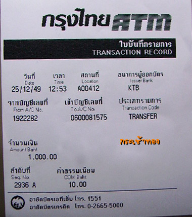 โอนเงินมาพร้อมค่าตรวจสอบพระออกใบรับรอง เมื่อวันที่ 29/11/2549 ครับ