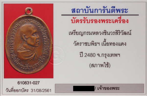 ขอขอบคุณท่านสมาชิกเจ้าของบัตรรับรองพระเครื่องทั้ง 2 บัตรค่ะ