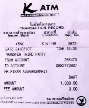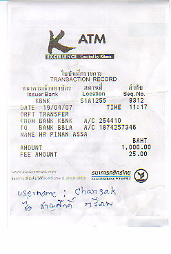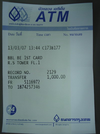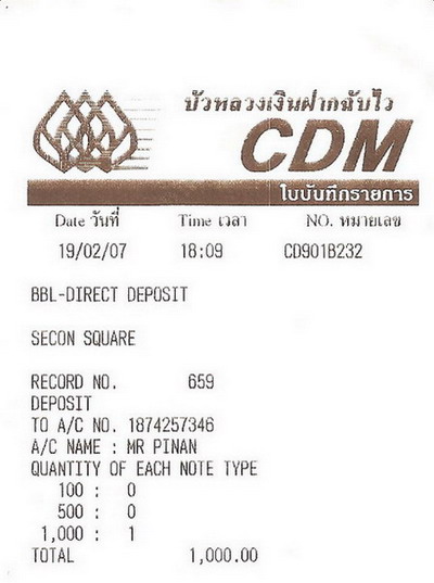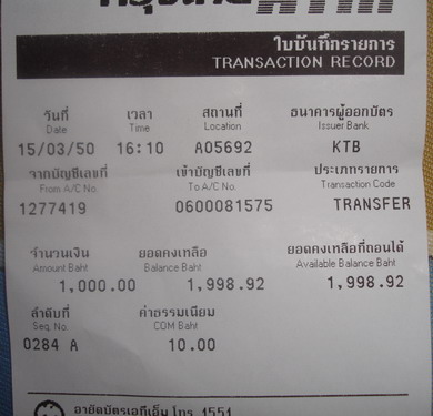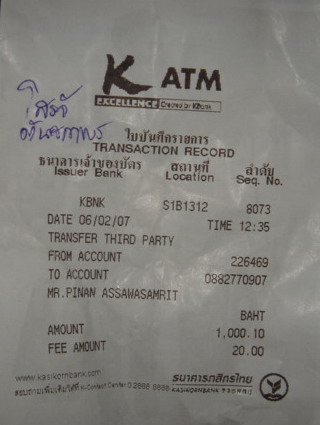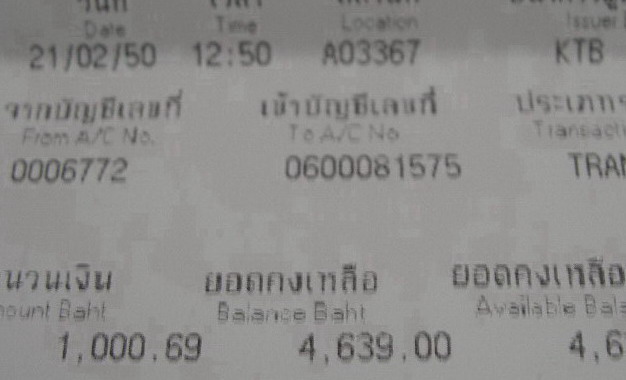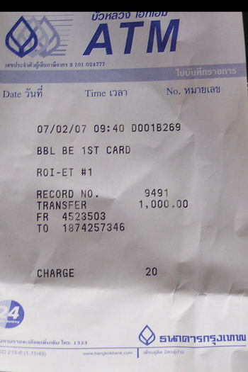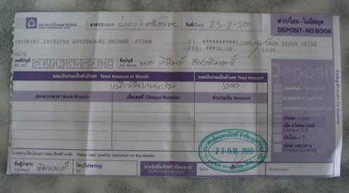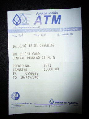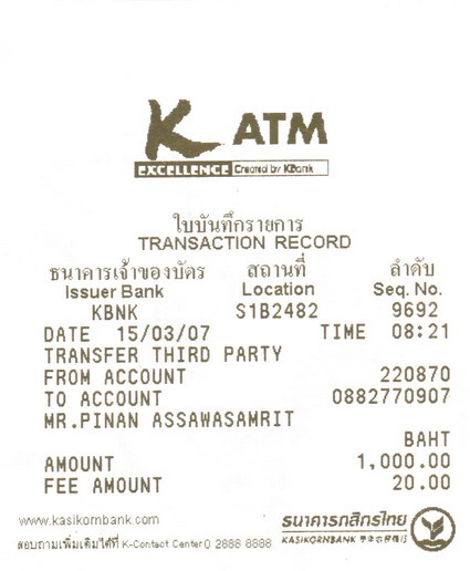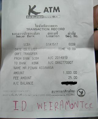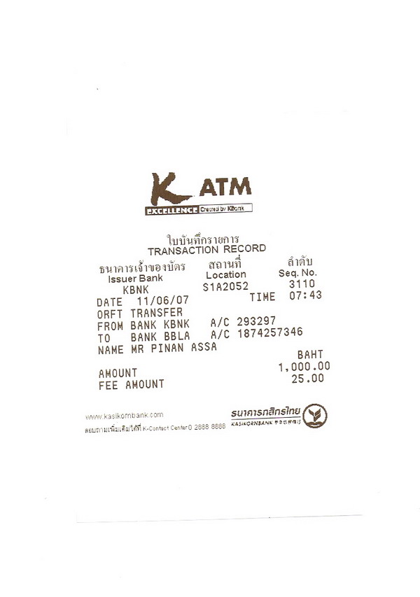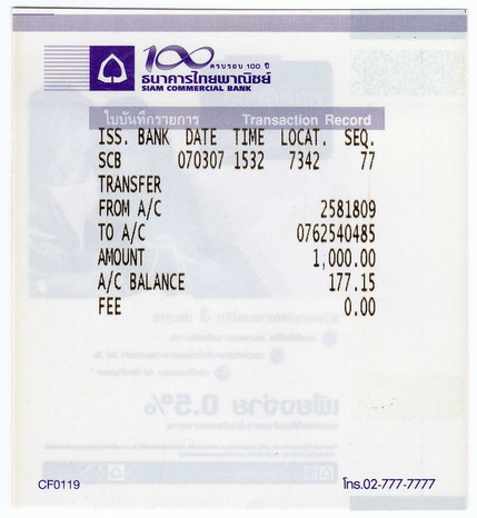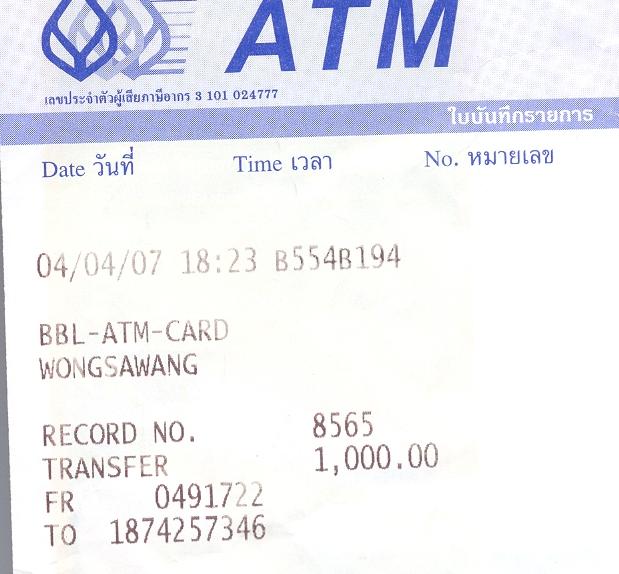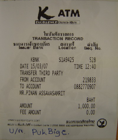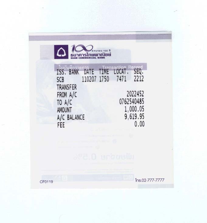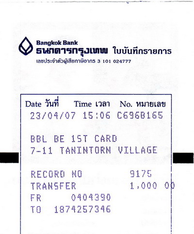 โอนเงินค่าธรรมเนียมเข้าธนาคารกรุงเทพฯ 1,000.09 บาท และได้ Fax สำเนาไปให้แล้วครับ
