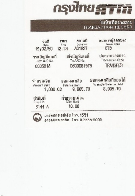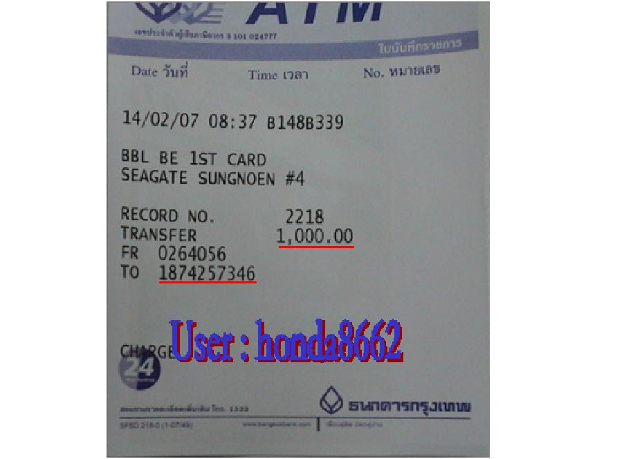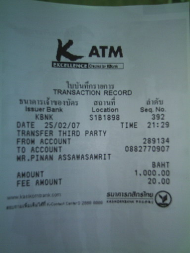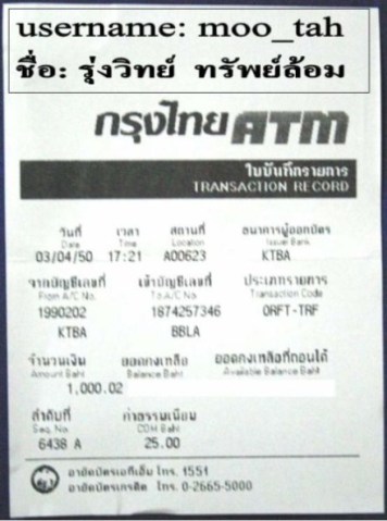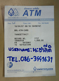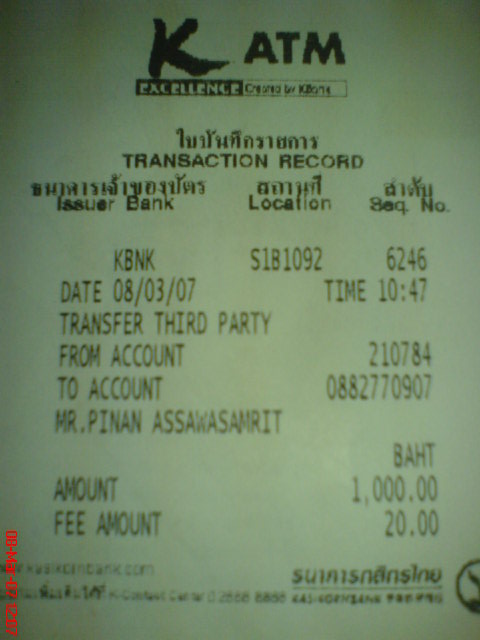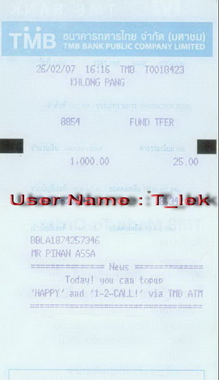 แจ้งการโอนครับ วันที่ 28-24-2550 เวลา 18.35 น. ครับ ยอด 1,000.