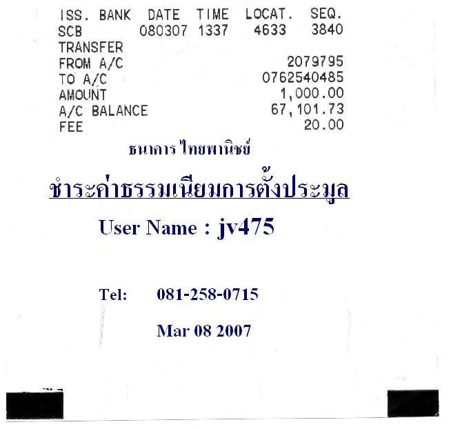 โอนเงินค่าสมาชิกแล้วครับ 1000 บาท User name: kanchana วุฒิไกร แก้วขาว โทร0814501577