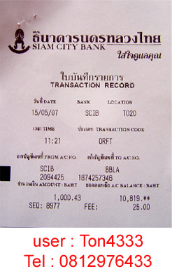 ขอทราบผลการโอนและใบแฟกซ์ที่ส่งไปให้ครับ 089 - 6143431
