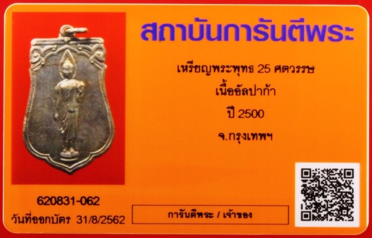 - ดังนั้นเพื่อส่งเสริมให้ท่านสมาชิกได้มีบัตรรับรองพระเครื่อง QR Code รุ่นใหม่ และเพื่อส่งเสริมการเช่าบูชาพระเครื่องแท้ราคาหลักร้อยนี้ ทางสถาบันการันตีพระจะออกบัตรฯ QR Code ในอัตราพิเศษเพียง 100 บาทต่อองค์เท่านั้น ( ค่าจัดส่งพระเครื่องคืน 100 บาทต่อจำนวนไม่เกิน 20 องค์ ) โดยมีเงื่อนไขการขอออกบัตรฯดังนี้ค่ะ