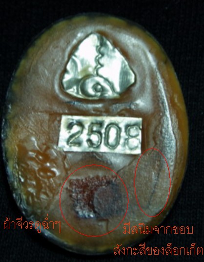 โดยส่วนตัว เวลาที่ผมจะซื้อ ผมจะสังเกตุที่ผ้าจีวรต้องฉ่ำเนื่องจากอยู่ในเทียนมาต้อง 38 ปี และเมื่อก่อนการเก็บรักษาก็ไม่ดีเหมือนสมัยนี้ เมื่อเจออากาศร้อนๆทำให้เทียนละลายเข้ากับผ้าจีวรทำให้ผ้าจีวรดูฉ่ำ ไม่แห้งเหมือนแปะใหม่ๆ และจะมีสนิมจากขอบสังกะสีของล็อกเก็ต ติดที่น้ำเทียนบางตามอายุ นี่ก็เป็นส่วนหนึ่งที่พอตัดสินใจเบื้องต้นครับ