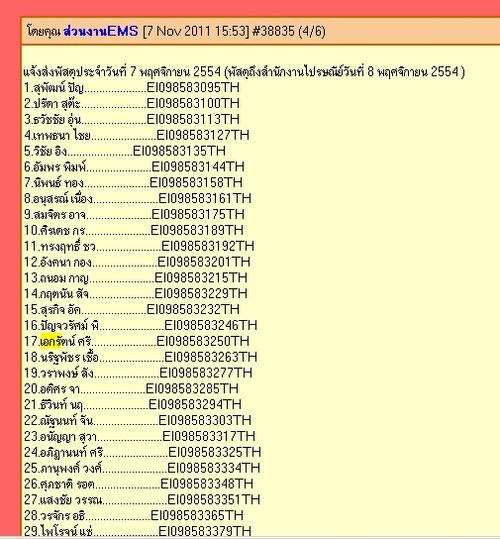 ............... นายภินันท์ อัศวสัมฤทธิ์ ตู้ปณ.60 ปณศ.จรเข้บัว กทม 10230 ( ตั้งแต่วันที่ 14 พ.ย.54 ) ............