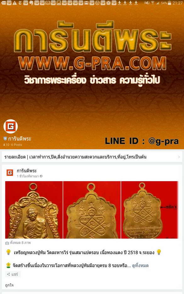 - ไลน์แอด @g-pra นี้เป็นส่วนหนึ่งของสถาบันการันตีพระ โดยมีวัตถุประสงค์เพื่อให้ความรู้และข่าวสารต่างๆเกี่ยวกับพระเครื่อง เครื่องรางของขลัง ข่าวสารงานบุญต่างๆ ข่าวสารการส่งเสริมวัฒนธรรมประเพณีอันดีงามของบ้านเรารวมไปถึงข่าวสารต่างๆอันเป็นประโยชน์ให้กับสมาชิกเว็บไซต์การันตีพระและบุคคลทั่วไป โดยในส่วนที่เป็นความรู้ด้านพระเครื่องนั้นได้จัดทำโดยส่วนงานวิชาการสถาบันการันตีพระและคณะที่ปรึกษาพระเครื่องสถาบันการันตีพระ