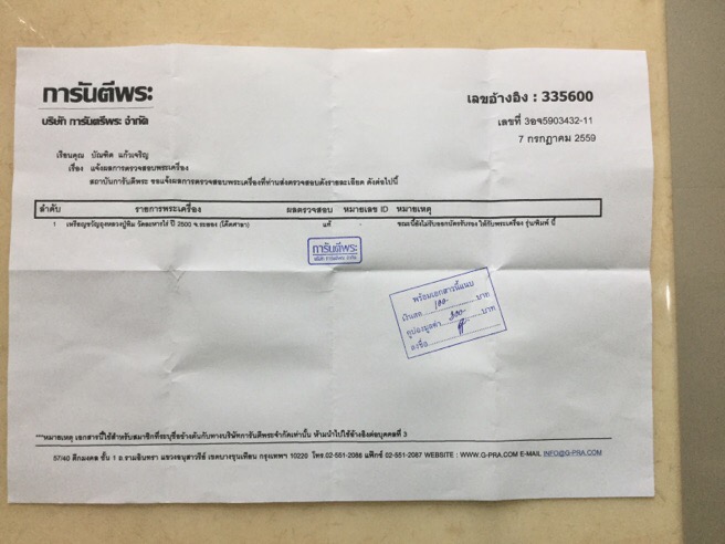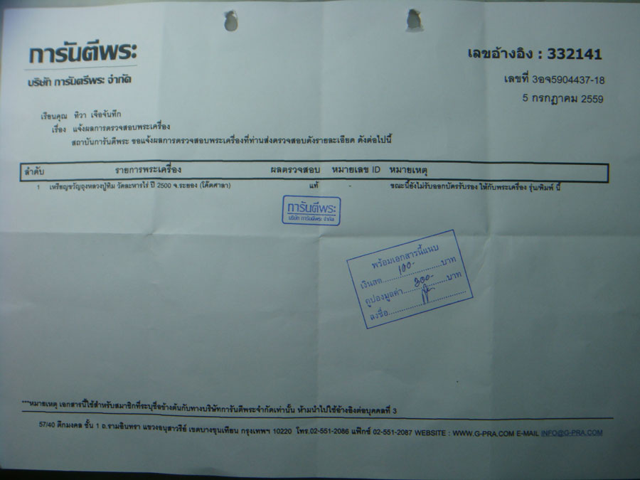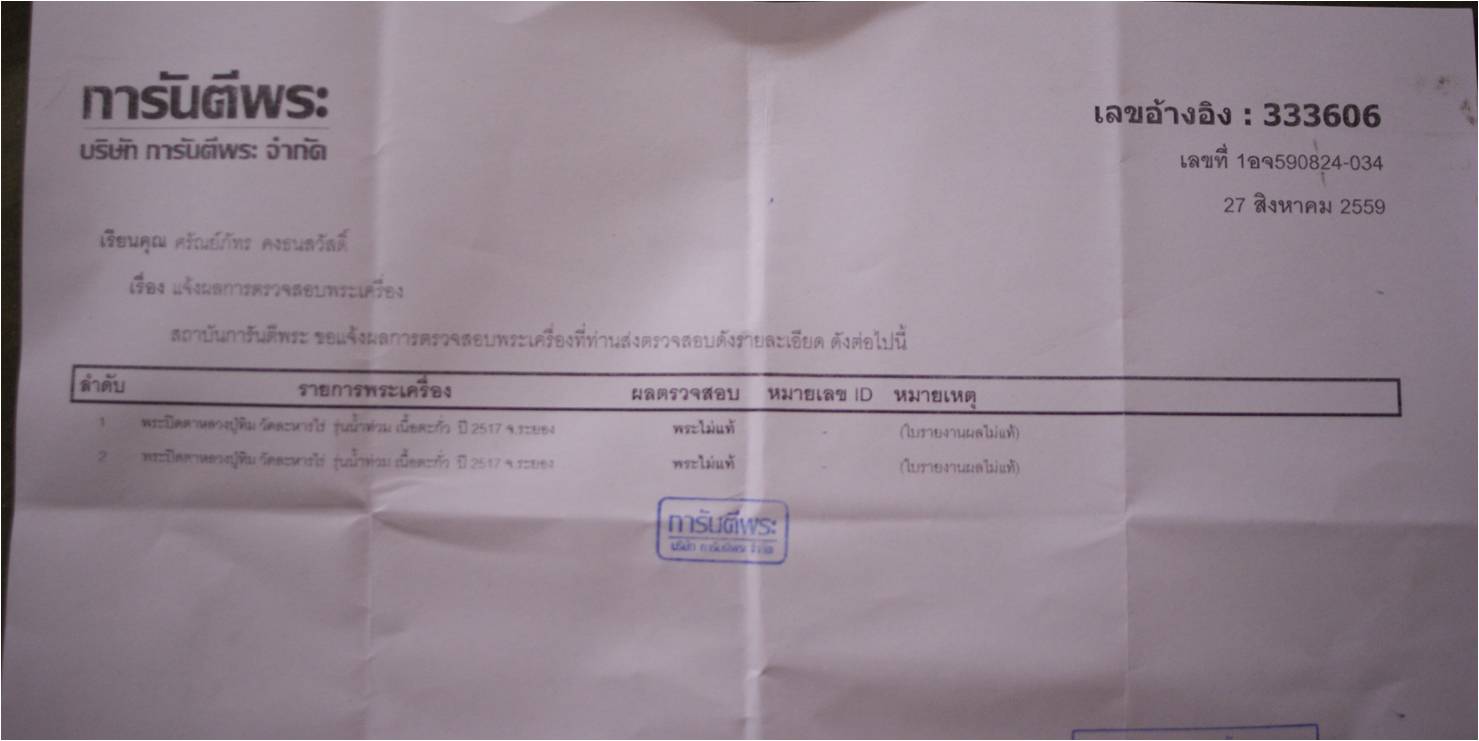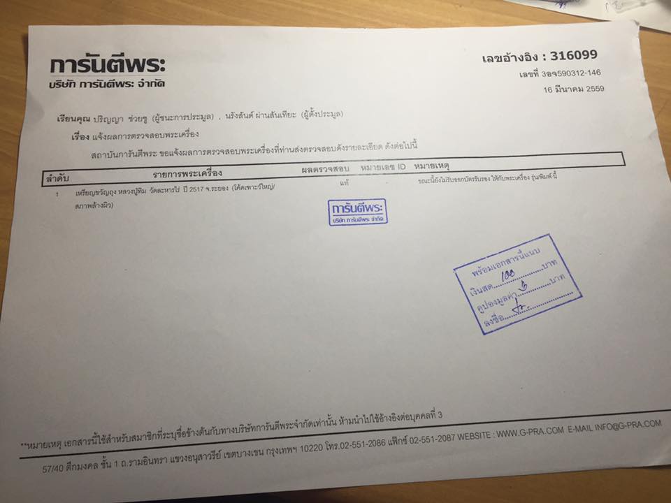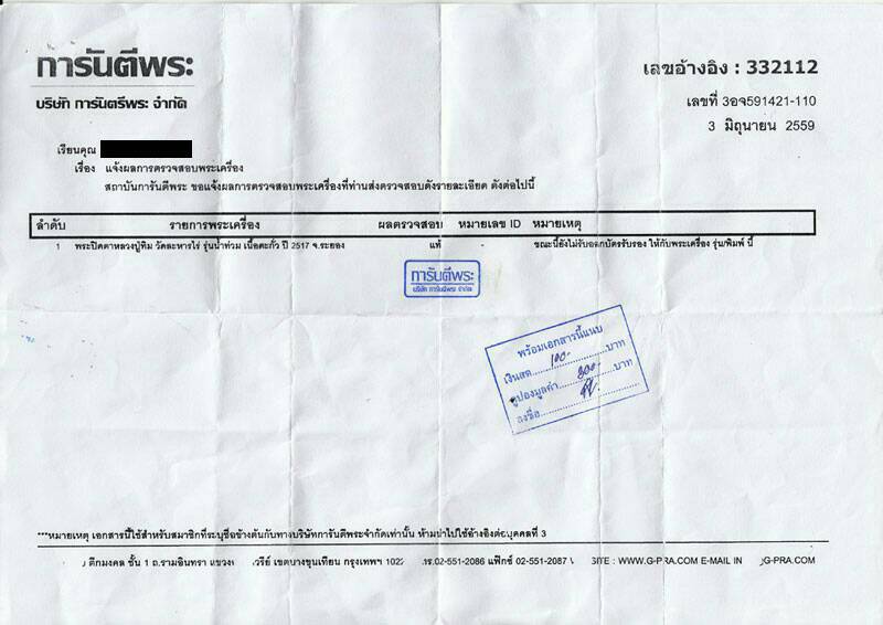 ของผมรุ่นนี้ได้นำขึ้นคอบูชาตั้งแต่สมัยยังไม่เคยเล่นพระเครื่อง (ได้จากหลวงพี่จังหวัดระยอง ปี2535 ตั้งแต่สมัยหลวงปู่ยังไม่ดังมาก เหรียญปรกไตรมาสราคา 800 บาท, เสมาราคาบูชา 2,000 บาท, เจริญพรบน 3,000 บาท ซึ่งพระปิดตาน้ำท่วมสามารถแบ่งให้น้องๆ หรือลุกศิษย์ได้เลยโดยไม่ต้องเสียดาย) แต่เคยส่งไปออกบัตรจีพระ บอกว่าไม่แท้แต่ก็ยังเก็บบูชาอยู่เหมือนเดิมไม่เปลี่ยน.