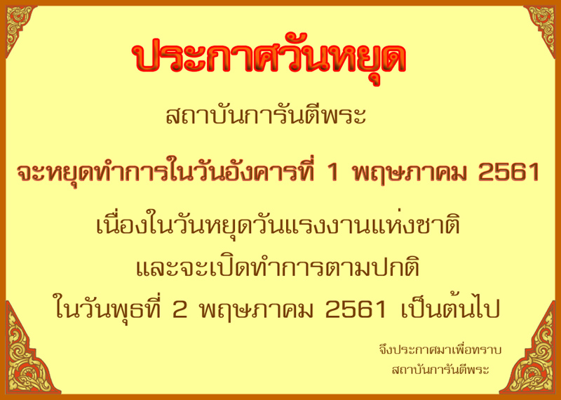 ประกาศวันหยุด วันแรงงานแห่งชาติ 2561