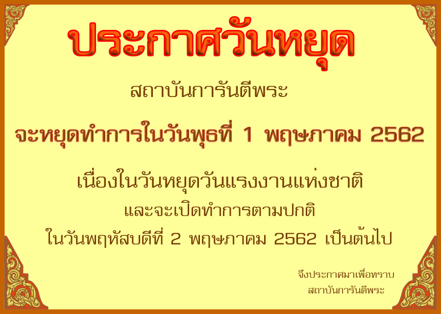 ประกาศวันหยุด วันแรงงานแห่งชาติ ประจำปี2562