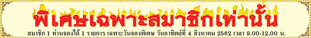 *** ในหน้า 2 ฉบับที่ 255 ประจำเดือนสิงหาคม 2562 สมาชิกนิตยสารการันตีพระ และสมาชิกพัฒนาเว็บไซต์ฯ สามารถโทรจองได้ในวันอาทิตย์ที่ 4 สิงหาคม 2562 เวลา 9.00-12.00 น. ***