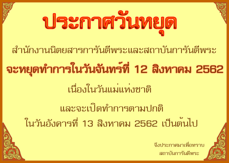 ประกาศวันหยุด วันแม่แห่งชาติ ประจำปี2562