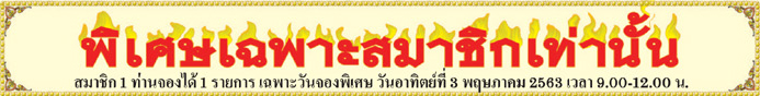 *** ในหน้า 2 ฉบับที่ 264 ประจำเดือนพฤษภาคม 2563 สมาชิกนิตยสารการันตีพระ และสมาชิกพัฒนาเว็บไซต์ฯ สามารถโทรจองได้ในวันอาทิตย์ที่ 3 พฤษภาคม 2563 เวลา 9.00-12.00 น. ***