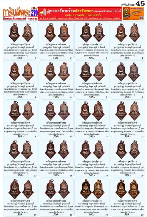 - เปิดเช่าพระเครื่องในราคา ** ถูกพิเศษ** ในหน้าพิเศษนี้ จำนวน 20 องค์ พร้อม ** บัตรรับรองพระเครื่องทุกองค์ ** ในวันเสาร์ที่ 7 พฤศจิกายน 63 เวลา 15.00-16.00 น. ที่เบอร์โทร 085-526-8682 และ 085-992-6303 เท่านั้น