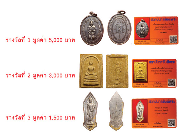 - ท่านสมาชิกทั้ง 3 ท่าน สามารถขอรับรางวัลได้ที่สถาบันการันตีพระ เคาน์เตอร์ ชั้น 5 หรือ โทรแจ้งให้จัดส่งทางไปรษณีย์ได้ที่เบอร์ 02-551-2086 ( ค่าจัดส่ง 100 บาท )