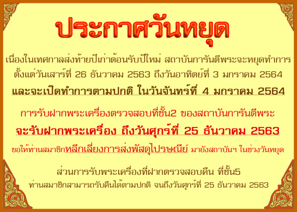 ประกาศวันหยุดเทศกาลวันปีใหม่ ประจำปี2564