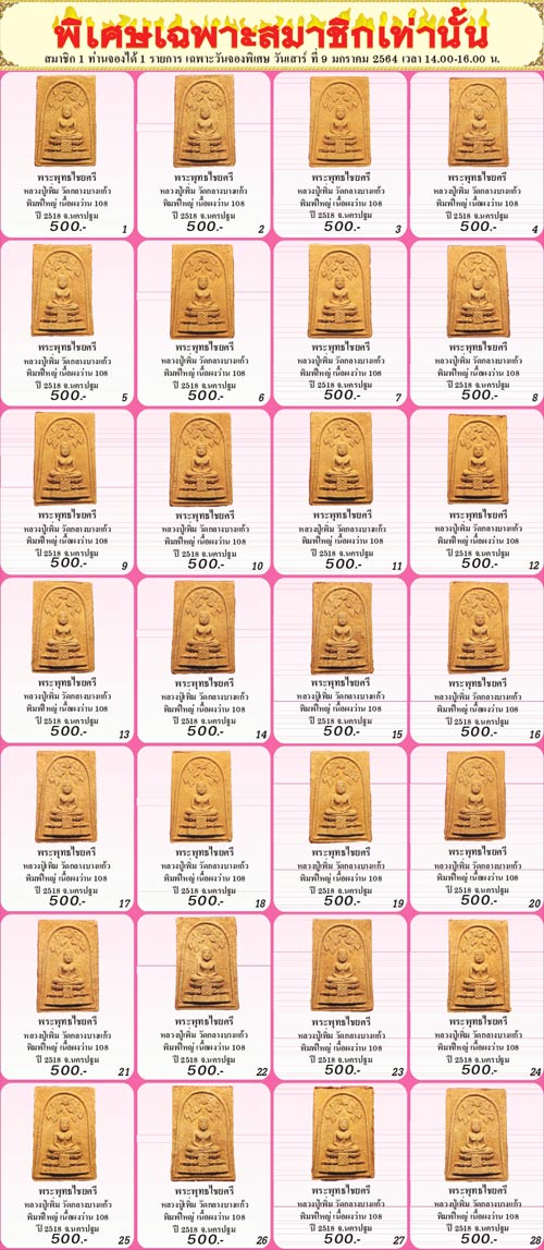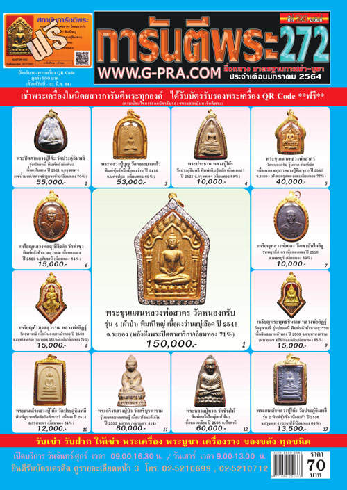 *** ในหน้า 2 ฉบับที่ 272 ประจำเดือนมกราคม 2564 สมาชิกนิตยสารการันตีพระ และสมาชิกพัฒนาเว็บไซต์ฯ สามารถโทรจองได้ในวัน *** เสาร์ที่ 9 มกราคม 25964 เวลา 14.00-16.00 น. ***