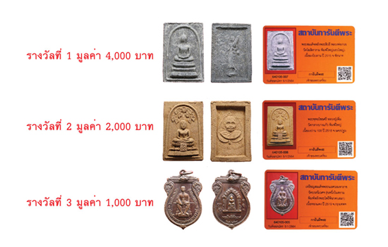 - เพื่อแทนคำขอบคุณนี้ ทางเว็บไซต์ฯ ขอมอบพระเครื่องพร้อมบัตรรับรอง QR Code จำนวน 3 รางวัลประจำเดือน ม.ค. 64 นี้ให้กับท่านสมาชิกฯ โดยทางเว็บไซต์ฯจะจับสลากจากรายชื่อท่านสมาชิกพัฒนาเว็บไซต์ฯทุกท่าน ในวันเสาร์ที่ 9 มกราคม 2564 เวลา 16.00 น. และจะประกาศรายชื่อผู้ได้รับรางวัล ที่หน้าเว็บไซต์ฯในวันจันทร์ที่ 11 มกราคม 2564 โดยท่านสมาชิกสามารถรับรางวัลได้ที่สถาบันการันตีพระ ชั้น 5 หรือ แจ้งให้จัดส่งทางไปรษณีย์ได้ทางไลน์แอดที่ @g-pra.payment (24 ชั่วโมง ) หรือโทรแจ้งที่เบอร์โทร 02-551-2086 ( ค่าจัดส่ง 100 บาท )