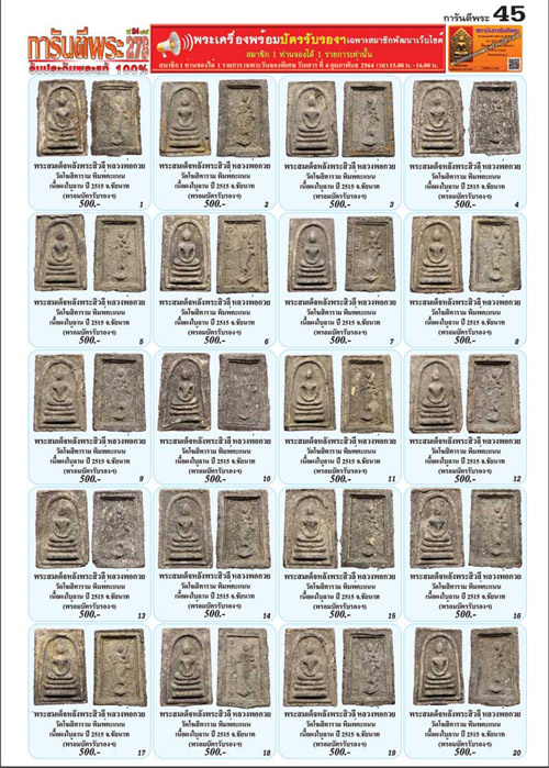 - เปิดเช่าพระเครื่องในราคา ** ถูกพิเศษ** ในหน้าพิเศษนี้ จำนวน 20 องค์ พร้อม ** บัตรรับรองพระเครื่องทุกองค์ ** ในวันเสาร์ที่ 6 กุมภาพันธ์ 64 เวลา 15.00-16.00 น. ที่เบอร์โทร 085-526-8682 และ 085-992-6303 เท่านั้น