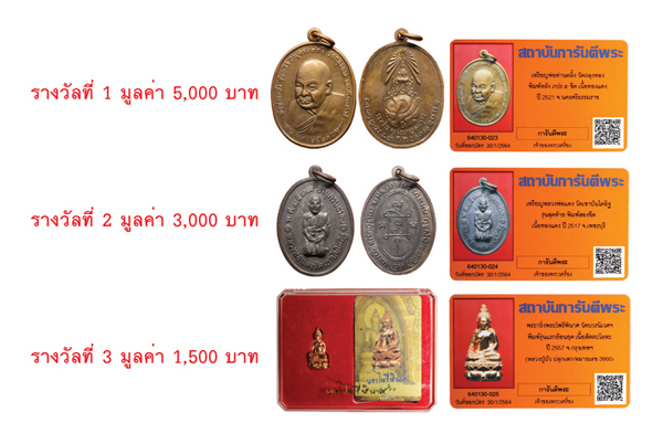 - ท่านสมาชิกทั้ง 3 ท่าน สามารถขอรับรางวัลได้ที่สถาบันการันตีพระ เคาน์เตอร์ ชั้น 5 หรือ โทรแจ้งให้จัดส่งทางไปรษณีย์ได้ที่เบอร์ 02-551-2086 ( ค่าจัดส่ง 100 บาท )