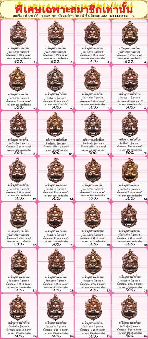 *** ในหน้า 2 ฉบับที่ 274 ประจำเดือนมีนาคม 2564 สมาชิกนิตยสารการันตีพระ และสมาชิกพัฒนาเว็บไซต์ฯ สามารถโทรจองได้ในวัน *** เสาร์ที่ 6 มีนาคม 2564 เวลา 14.00-16.00 น. ***