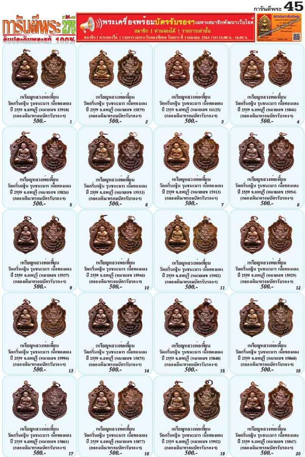 - เปิดเช่าพระเครื่องในราคา ** ถูกพิเศษ** ในหน้าพิเศษนี้ จำนวน 20 องค์ พร้อม ** บัตรรับรองพระเครื่องทุกองค์ ** ในวันเสาร์ที่ 3 เมษายน 64 เวลา 15.00-16.00 น. ที่เบอร์โทร 085-526-8682 และ 085-992-6303 เท่านั้น