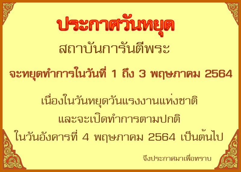 ประกาศวันหยุด วันแรงงานแห่งชาติ ประจำปี2564