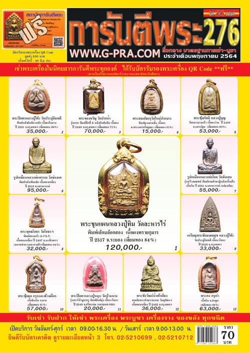 *** ในหน้า 2 ฉบับที่ 276 ประจำเดือนพฤษภาคม 2564 สมาชิกนิตยสารการันตีพระ และสมาชิกพัฒนาเว็บไซต์ฯ สามารถโทรจองได้ในวัน *** เสาร์ที่ 8 พฤษภาคม 2564 เวลา 14.00-16.00 น. ***