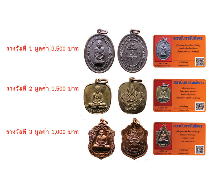 - เพื่อแทนคำขอบคุณนี้ ทางเว็บไซต์ฯ ขอมอบพระเครื่องพร้อมบัตรรับรอง QR Code จำนวน 3 รางวัลประจำเดือนสิงหาคม 64 นี้ให้กับท่านสมาชิกฯ โดยทางเว็บไซต์ฯจะจับสลากจากรายชื่อท่านสมาชิกพัฒนาเว็บไซต์ฯทุกท่าน ในวันเสาร์ที่ 7 สิงหาคม 64 เวลา 16.00 น. และจะประกาศรายชื่อผู้ได้รับรางวัล ที่หน้าเว็บไซต์ฯในวันจันทร์ที่ 9 สิงหาคม 64 โดยท่านสมาชิกสามารถรับรางวัลได้ที่สถาบันการันตีพระ ชั้น 5 หรือ แจ้งให้จัดส่งทางไปรษณีย์ได้ทางไลน์แอดที่ @g-pra.payment (24 ชั่วโมง) หรือโทรแจ้งที่เบอร์โทร 02-551-2086 ( ค่าจัดส่ง 100 บาท )
