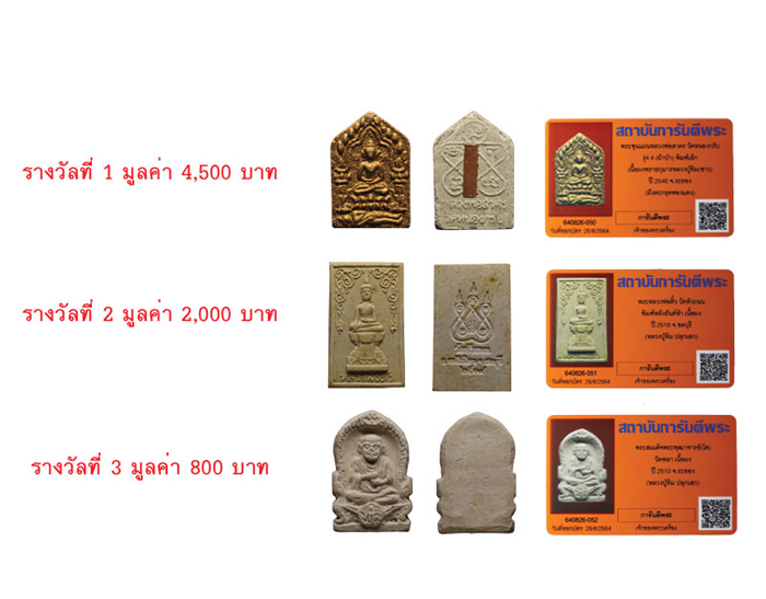 - เพื่อแทนคำขอบคุณนี้ ทางเว็บไซต์ฯ ขอมอบพระเครื่องพร้อมบัตรรับรอง QR Code จำนวน 3 รางวัลประจำเดือนกันยายน 64 นี้ให้กับท่านสมาชิกฯ โดยทางเว็บไซต์ฯจะจับสลากจากรายชื่อท่านสมาชิกพัฒนาเว็บไซต์ฯทุกท่าน ในวันเสาร์ที่ 4 กันยายน 64 เวลา 16.00 น. และจะประกาศรายชื่อผู้ได้รับรางวัล ที่หน้าเว็บไซต์ฯในวันจันทร์ที่ 6 กันยายน 64 โดยท่านสมาชิกสามารถรับรางวัลได้ที่สถาบันการันตีพระ ชั้น 5 หรือ แจ้งให้จัดส่งทางไปรษณีย์ได้ทางไลน์แอดที่ @g-pra.payment (24 ชั่วโมง) หรือโทรแจ้งที่เบอร์โทร 02-551-2086 ( ค่าจัดส่ง 100 บาท )
