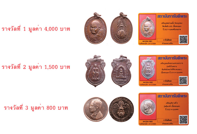 - เพื่อแทนคำขอบคุณนี้ ทางเว็บไซต์ฯ ขอมอบพระเครื่องพร้อมบัตรรับรอง QR Code จำนวน 3 รางวัลประจำเดือนมกราคม 65 นี้ให้กับท่านสมาชิกฯ โดยทางเว็บไซต์ฯจะจับสลากจากรายชื่อท่านสมาชิกพัฒนาเว็บไซต์ฯทุกท่าน ในวันเสาร์ที่ 8 มกราคม 2565 เวลา 16.00 น. และจะประกาศรายชื่อผู้ได้รับรางวัล ที่หน้าเว็บไซต์ฯในวันจันทร์ที่ 10 มกราคม 2565 โดยท่านสมาชิกสามารถรับรางวัลได้ที่สถาบันการันตีพระ ชั้น 5 หรือ แจ้งให้จัดส่งทางไปรษณีย์ได้ทางไลน์แอดที่ @g-pra.payment (24 ชั่วโมง) หรือโทรแจ้งที่เบอร์โทร 02-551-2086 ( ค่าจัดส่ง 100 บาท )