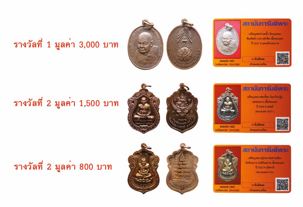 - เพื่อแทนคำขอบคุณนี้ ทางเว็บไซต์ฯ ขอมอบพระเครื่องพร้อมบัตรรับรอง QR Code จำนวน 3 รางวัลประจำเดือนพฤษภาคม 2565 นี้ให้กับท่านสมาชิกฯ โดยทางเว็บไซต์ฯจะจับสลากจากรายชื่อท่านสมาชิกพัฒนาเว็บไซต์ฯทุกท่าน ในวันเสาร์ที่ 7 พฤษภาคม 2565 เวลา 16.00 น. และจะประกาศรายชื่อผู้ได้รับรางวัล ที่หน้าเว็บไซต์ฯในวันจันทร์ที่ 9 พฤษภาคม 2565 โดยท่านสมาชิกสามารถรับรางวัลได้ที่สถาบันการันตีพระ ชั้น 5 หรือ แจ้งให้จัดส่งทางไปรษณีย์ได้ทางไลน์แอดที่ @g-pra.payment (24 ชั่วโมง) หรือโทรแจ้งที่เบอร์โทร 02-551-2086 ( ค่าจัดส่ง 100 บาท )