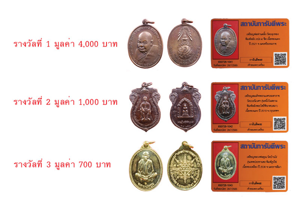 - เพื่อแทนคำขอบคุณนี้ ทางเว็บไซต์ฯ ขอมอบพระเครื่องพร้อมบัตรรับรอง QR Code จำนวน 3 รางวัลประจำเดือนสิงหาคม 2565 นี้ให้กับท่านสมาชิกฯ โดยทางเว็บไซต์ฯจะจับสลากจากรายชื่อท่านสมาชิกพัฒนาเว็บไซต์ฯทุกท่าน ในวันเสาร์ที่ 6 สิงหาคม 2565 เวลา 16.00 น. และจะประกาศรายชื่อผู้ได้รับรางวัล ที่หน้าเว็บไซต์ฯในวันจันทร์ที่ 8 สิงหาคม 2565 โดยท่านสมาชิกสามารถรับรางวัลได้ที่สถาบันการันตีพระ ชั้น 5 หรือ แจ้งให้จัดส่งทางไปรษณีย์ได้ทางไลน์แอดที่ @g-pra.payment (24 ชั่วโมง) หรือโทรแจ้งที่เบอร์โทร 02-551-2086 ( ค่าจัดส่ง 100 บาท )
