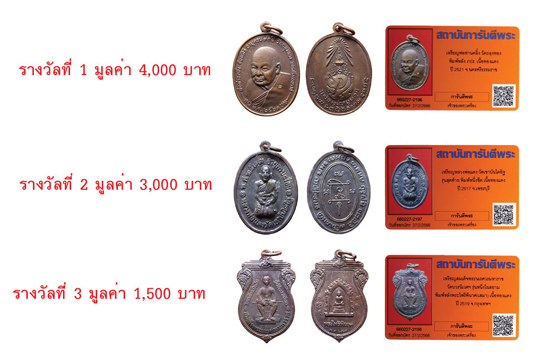 - ท่านสมาชิกทั้ง 3 ท่าน สามารถขอรับรางวัลได้ที่สถาบันการันตีพระ เคาน์เตอร์ ชั้น 5 หรือ โทรแจ้งให้จัดส่งทางไปรษณีย์ได้ที่เบอร์ 02-551-2086 ( ค่าจัดส่ง 100 บาท )