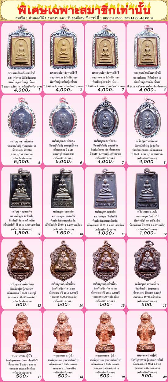 *** ในหน้า 2 ฉบับที่ 299 ประจำเดือนเมษายน 2566 สมาชิกนิตยสารการันตีพระ และสมาชิกพัฒนาเว็บไซต์ฯ สามารถโทรจองได้ในวัน *** เสาร์ที่ 1 เมษายน 2566 เวลา 14.00-16.00 น. ***
