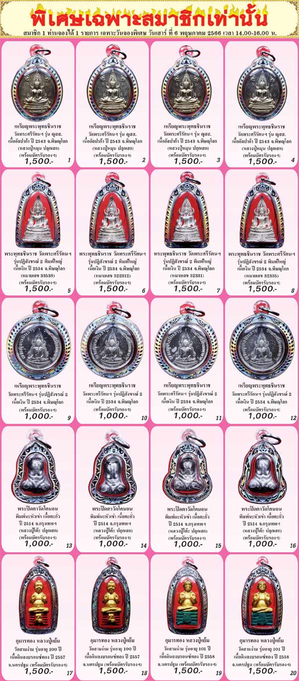 *** ในหน้า 2 ฉบับที่ 300 ประจำเดือนพฤษภาคม 2566 สมาชิกนิตยสารการันตีพระ และสมาชิกพัฒนาเว็บไซต์ฯ สามารถโทรจองได้ในวัน *** เสาร์ที่ 6 พฤษภาคม 2566 เวลา 14.00-16.00 น. ***