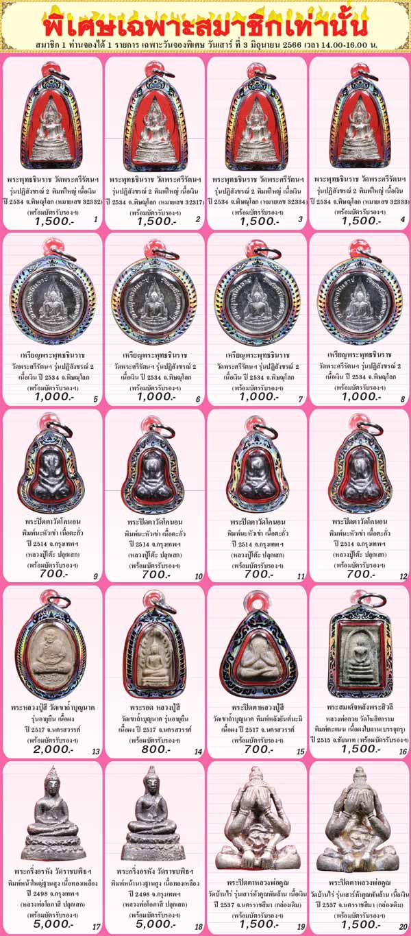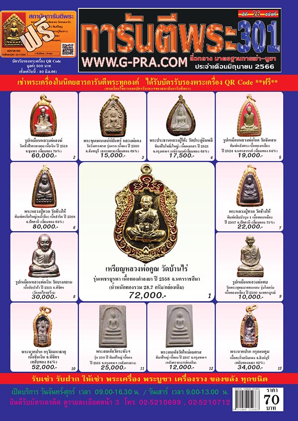 ** ในหน้า 2 ฉบับที่ 301 ประจำเดือนมิถุนายน 2566 สมาชิกนิตยสารการันตีพระ และสมาชิกพัฒนาเว็บไซต์ฯ สามารถโทรจองได้ในวัน *** เสาร์ที่ 3 มิถุนายน 2566 เวลา 14.00-16.00 น. ***