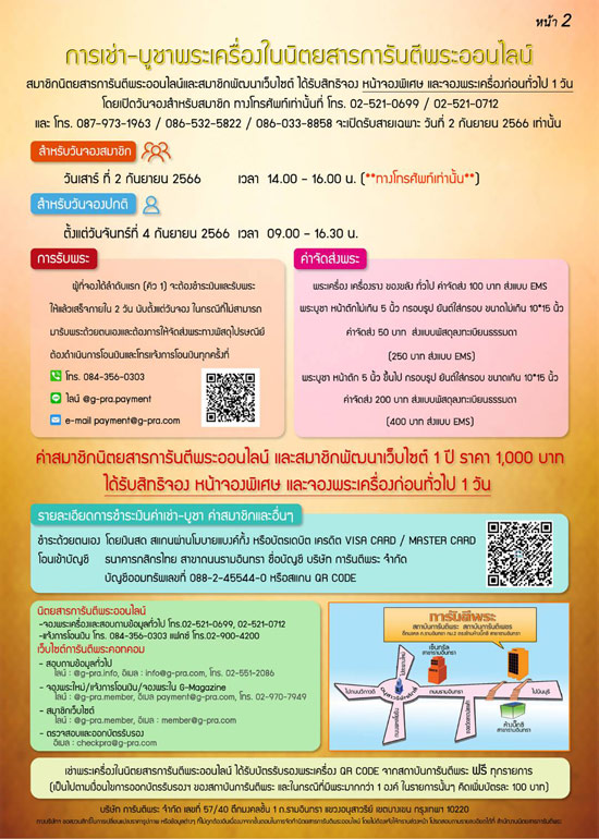 - ท่านสมาชิกที่สนใจสมัครเป็นสมาชิกพัฒนาเว็บไซต์ฯ สามารถสมัครได้ที่ไลน์แอด @g-pra.payment หรือที่ สถาบันการันตีพระ ชั้น 5 หรือ