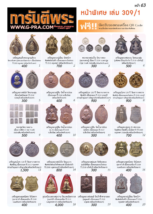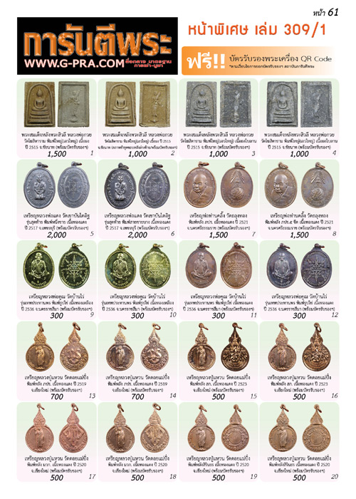 ** ขอเชิญเช่าบูชาพระเครื่องราคาถูกพิเศษ แถม บัตรรับรอง 1 ใบ ** หน้าพิเศษ 1 ( จำนวน 4 หน้า ) ของฉบับที่ 309 https://www.g-pra.com/magazine.php **