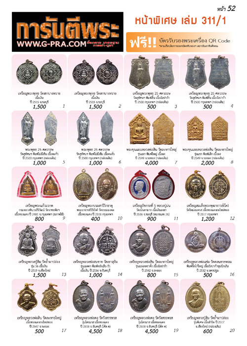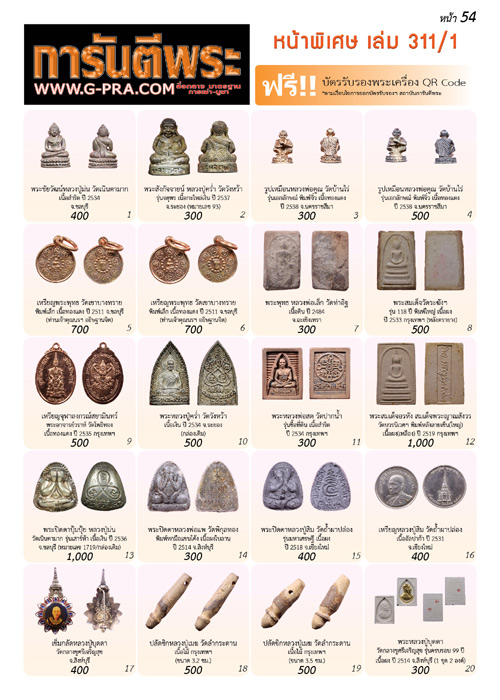 ** ขอเชิญเช่าบูชาพระเครื่องราคาถูกพิเศษ แถม บัตรรับรอง 1 ใบ ** หน้าพิเศษ 1 ( จำนวน 4 หน้า ) ของฉบับที่ 311 https://www.g-pra.com/magazine.php