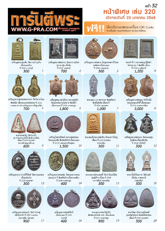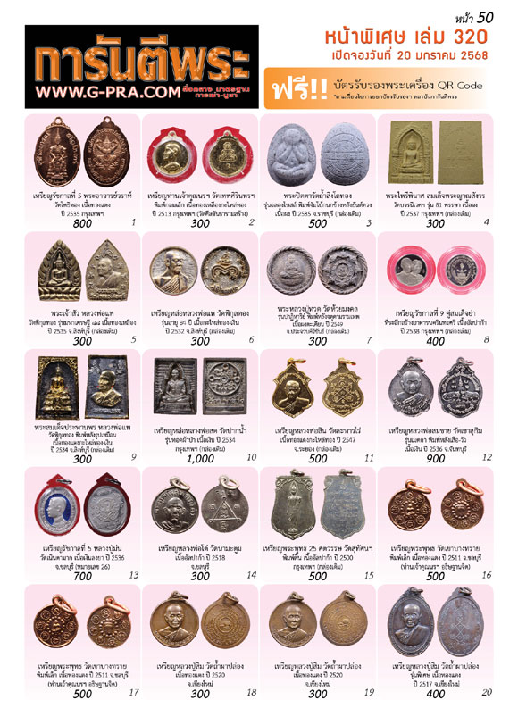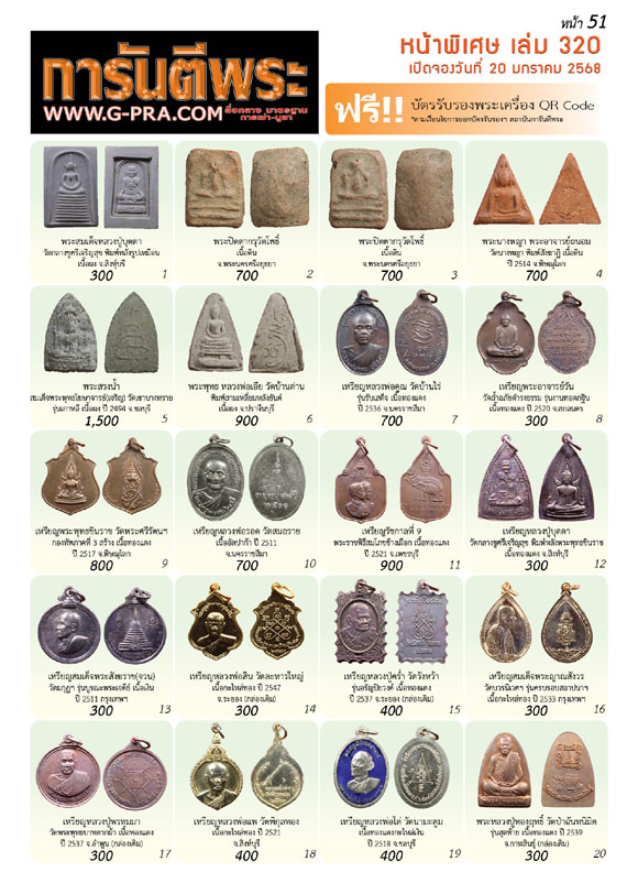 💥ขอเชิญเช่าบูชาพระเครื่องราคาถูกพิเศษ แถม บัตรรับรอง 1 ใบ ** หน้าพิเศษ ( จำนวน 4 หน้า ) ของฉบับที่ 320 https://www.g-pra.com/magazine.php