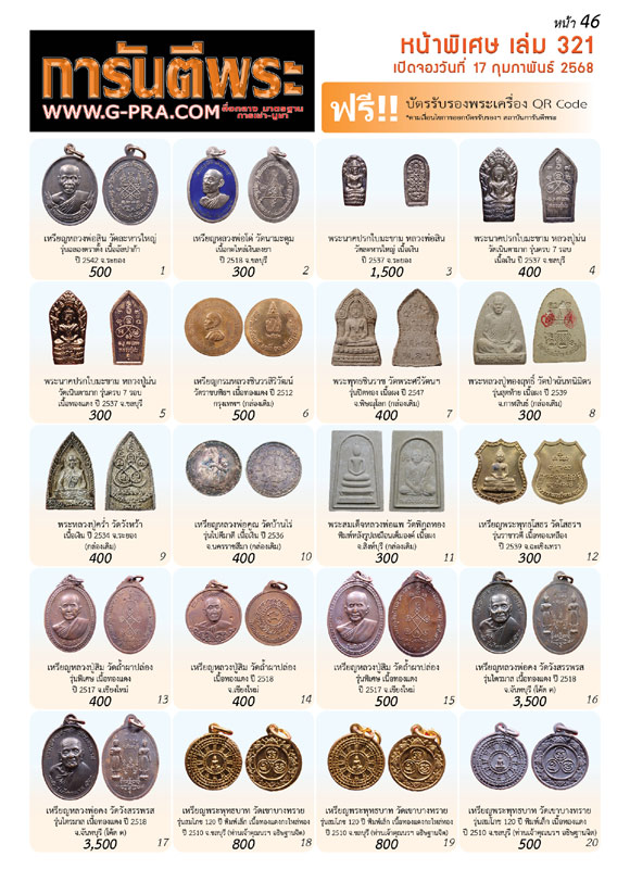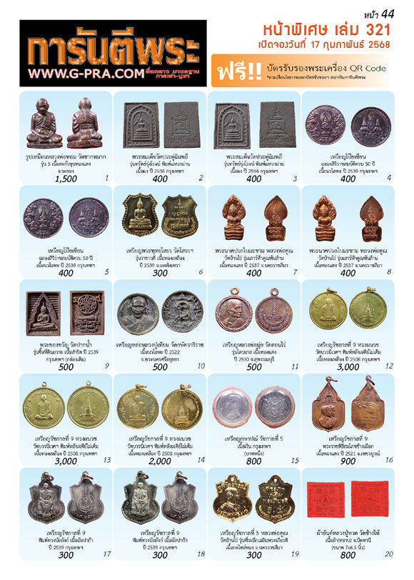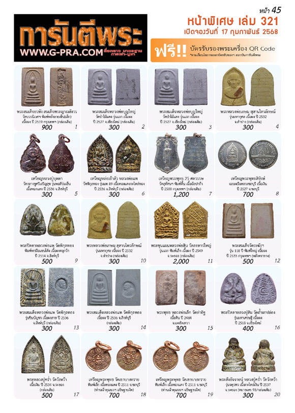 💥ขอเชิญเช่าบูชาพระเครื่องราคาถูกพิเศษ แถม บัตรรับรอง 1 ใบ ** หน้าพิเศษ ( จำนวน 4 หน้า ) ของฉบับที่ 321 https://www.g-pra.com/magazine.php