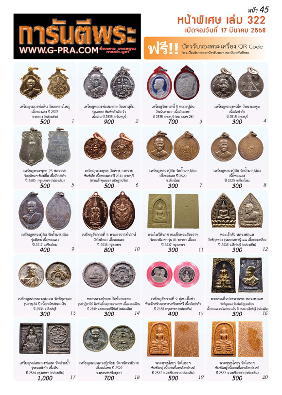 💥ขอเชิญเช่าบูชาพระเครื่องราคาถูกพิเศษ แถม บัตรรับรอง 1 ใบ ** หน้าพิเศษ ( จำนวน 2 หน้า ) ของฉบับที่ 322 https://www.g-pra.com/magazine.php