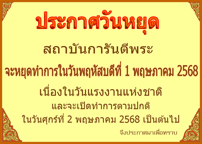 ประกาศวันหยุด วันแรงงานประจำปี2568