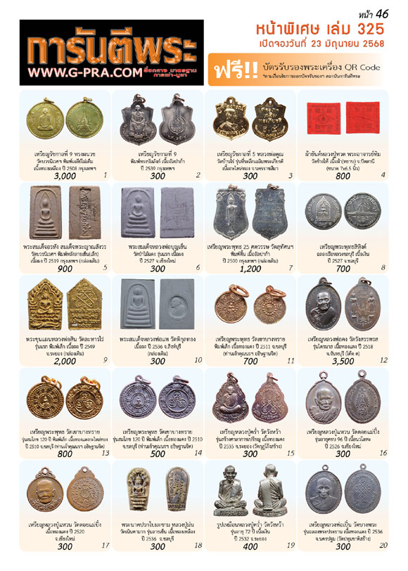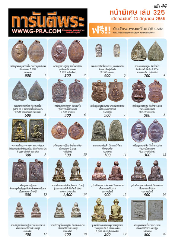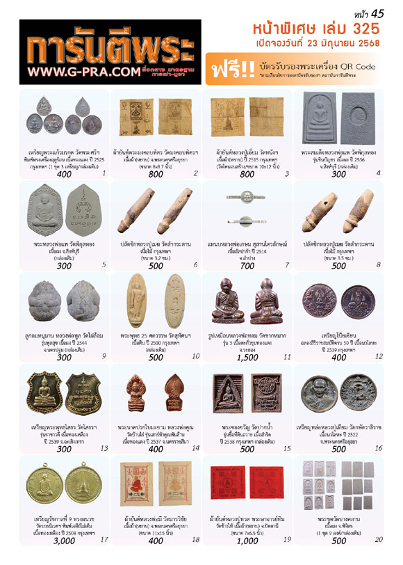 💥ขอเชิญเช่าบูชาพระเครื่องราคาถูกพิเศษ แถม บัตรรับรอง 1 ใบ ** หน้าพิเศษ ( จำนวน 4 หน้า ) ของฉบับที่ 325 https://www.g-pra.com/magazine.php