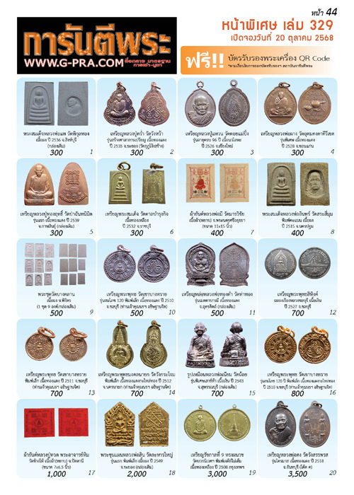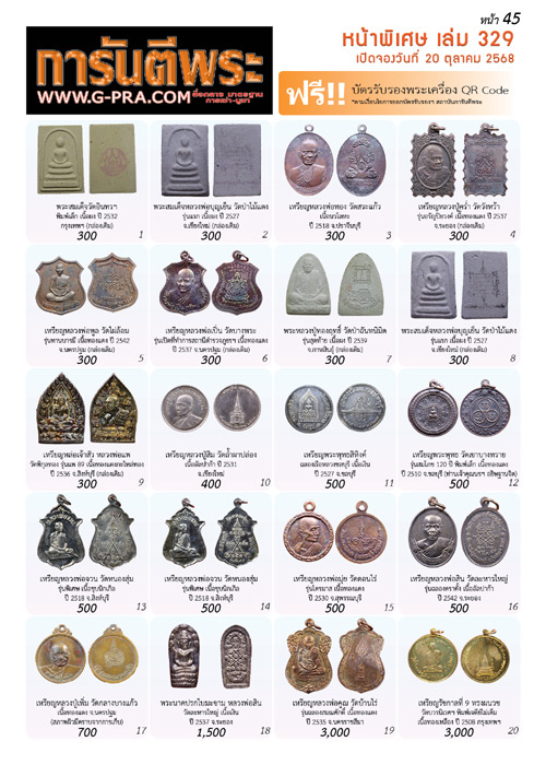 💥ขอเชิญเช่าบูชาพระเครื่องราคาถูกพิเศษ แถม บัตรรับรอง 1 ใบ ** หน้าพิเศษ ( จำนวน 4 หน้า ) ของฉบับที่ 329 https://www.g-pra.com/magazine.php