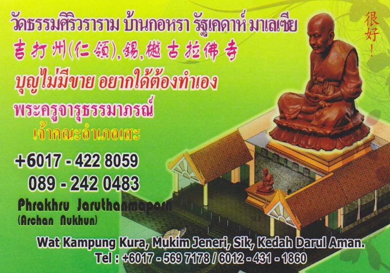 หรือติดต่อสอบถามรายละเอียดได้ที่ พระครูจารุธรรมภรณ์ มาเลเซีย +6017-422-8059