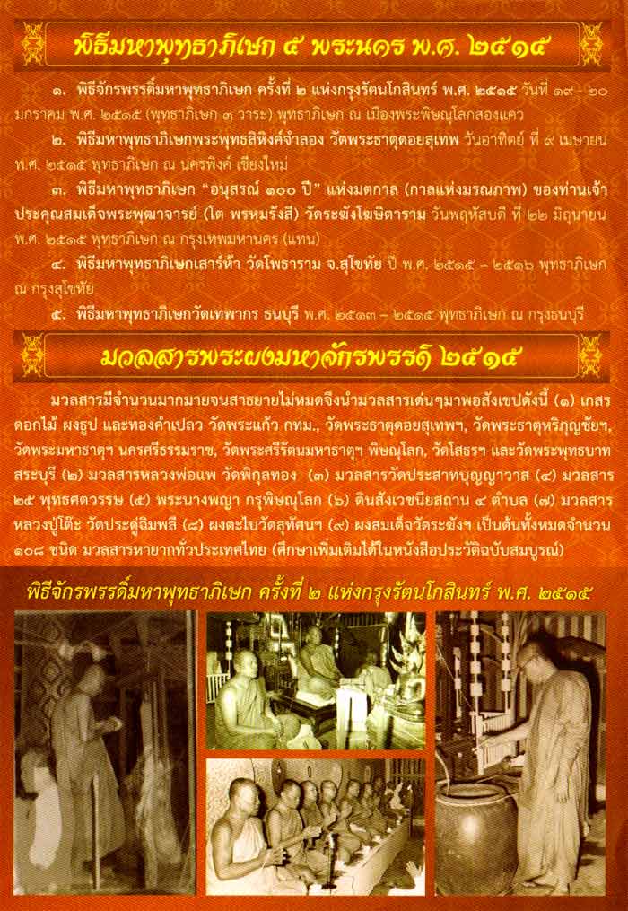 สุดยอด ๕ มหาพิธีพุทธาภิเษก ๒๕๑๕