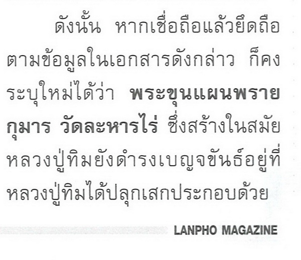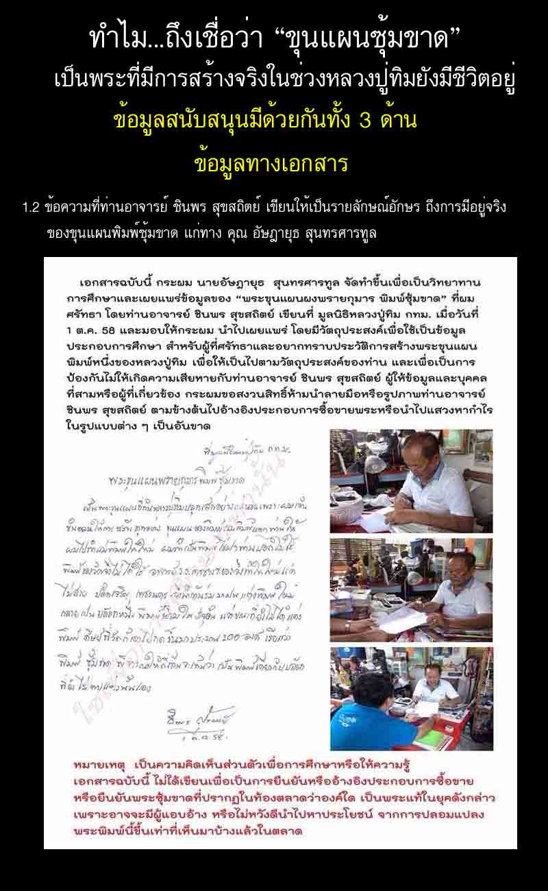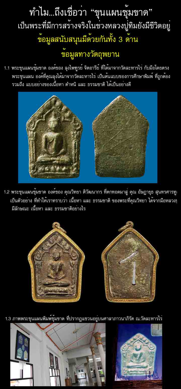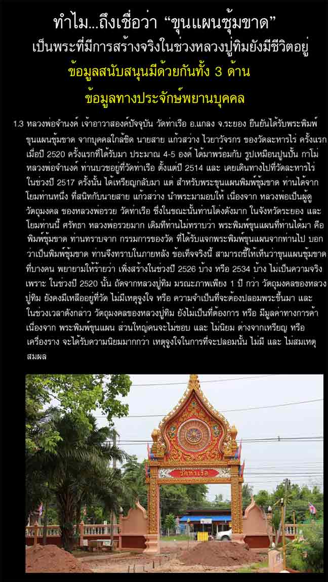 -พระขุนแผน ลป.ทิม วัดละหารไร่ พิมพ์ซุ้มขาด เนื้อผงพรายกุมาร ปี 2517 จ.ระยอง มีการเช่าบูชากันเฉพาะกลุ่ม และการเล่นหากันยังไม่เป็นมาตรฐานเดียวกัน ทางคณะที่ปรึกษาพระเครื่องฯได้ตรวจสอบข้อมูลท้้งหมดแล้ว ยังไม่สามารถสรุปข้อมูลทั้งหมดได้